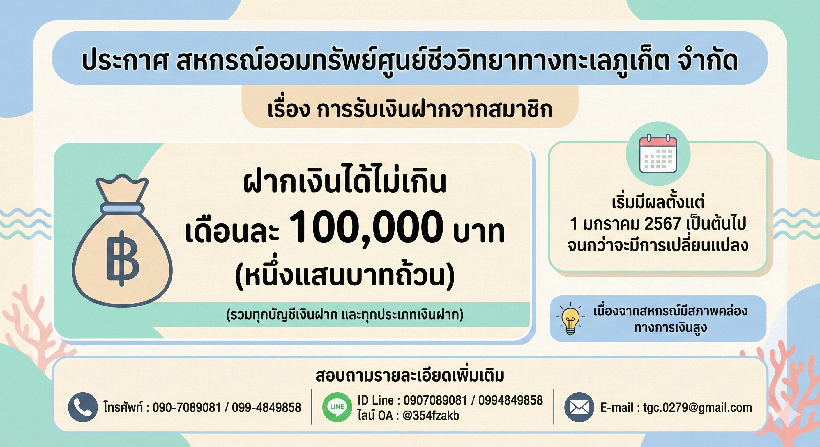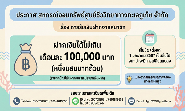 ประกาศ เรื่อง การรับเงินฝากจากสมาชิก