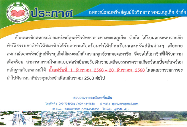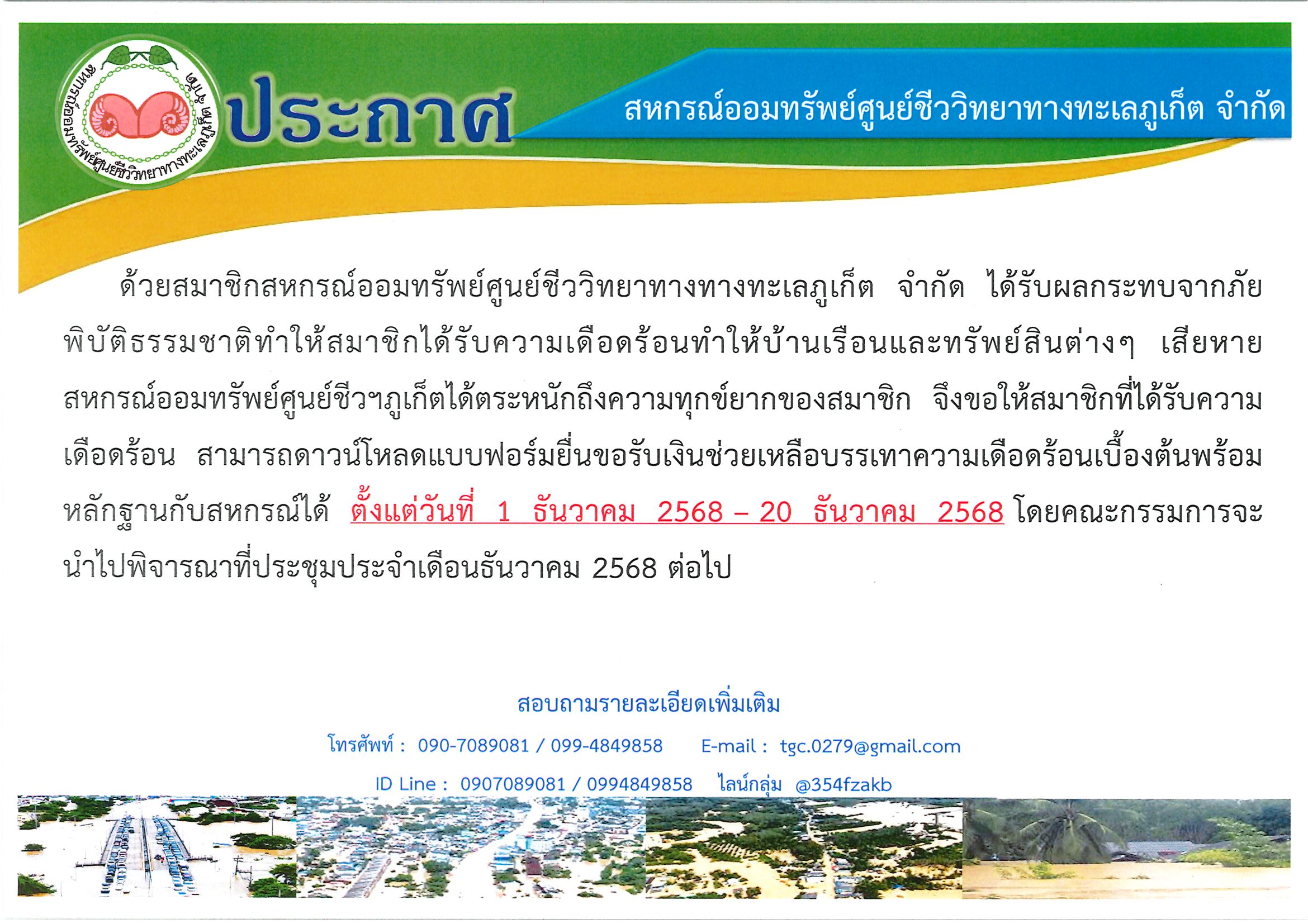 ประกาศ เรื่อง ช่วยเหลือสมาชิกที่ได้รับผลกระทบภัยพิบัติธรรมชาติ